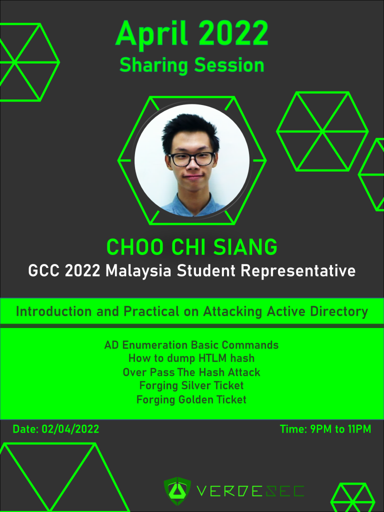 As part of VERDESEC ongoing effort to expose students to real-world cybersecurity knowledge, we organized a technical sharing session titled “Introduction and Practical on Attacking Active Directory”.