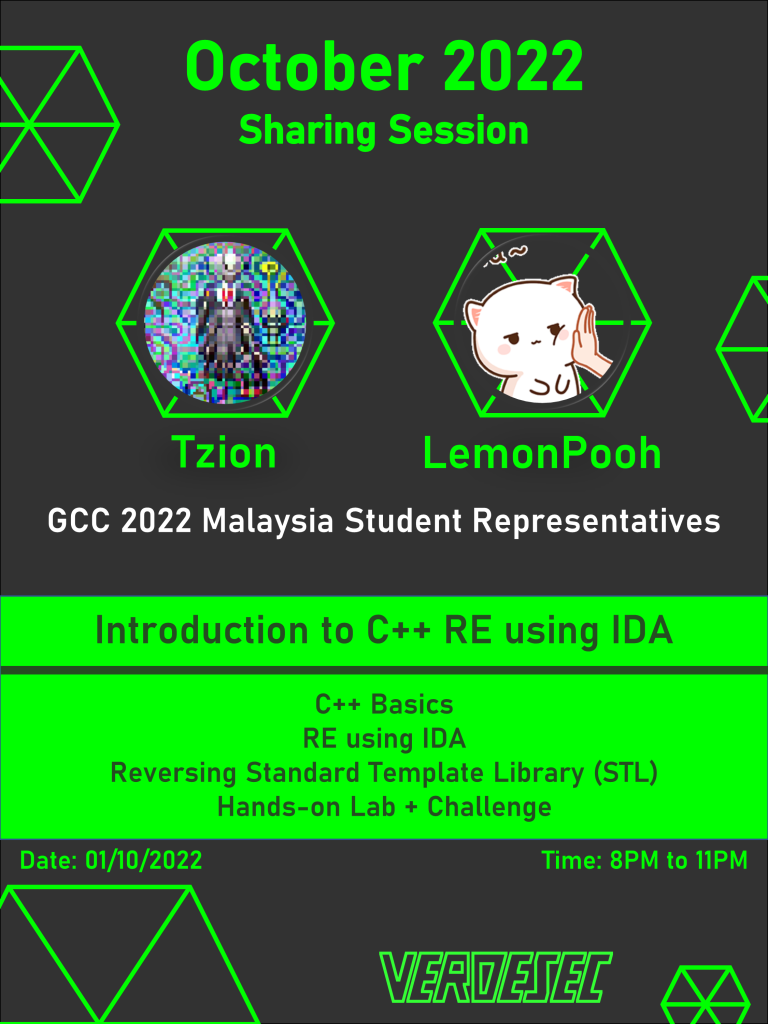 VERDESEC continued its online technical sharing series with another Discord session focused on Reverse Engineering, titled “Introduction to C++ RE Using IDA.” Designed for students and learners who wanted to explore the fundamentals of reverse engineering in a more structured way.